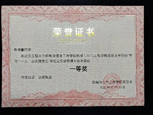 ![]() 红心向党 在思想上,他积极向党组织靠拢。在大一刚入学时,就向党组织递交了入党申请书,并通过班内推优,成为了一名入党积极分子。在培养考察期间,他积极参与志愿服务活动,投身学科竞赛,表现优秀,入选第十一期党员发展对象。后经支部大会讨论决定,光荣成为一名中共预备党员。在入党之后,他积极参与各项活动,曾参加304am永利集团举办的“学习二十大,永远跟党走”员工党员讲党课大赛,并荣获一等奖。参加青年成长讲座“叠翠听书阁”第九期,并作为主讲人领学二十大报告。他曾被推选为304am永利集团员工代表,参加第四次员工代表大会,代表员工投下了神圣的一票。