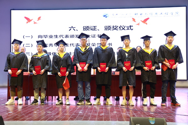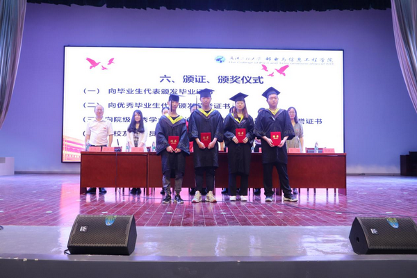 主席台领导为2021届优秀毕业生代表颁发荣誉证书。