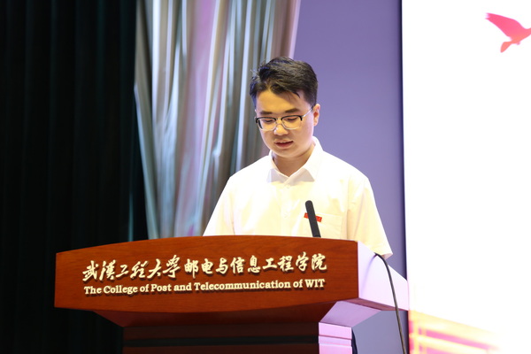 2017级机械制造及其自动化专业03班刘德铨同学作为优秀毕业生代表上台发言。他向四年来辛勤培育自己的各位老师及朝夕相处的同学们表达最衷心的感谢和最诚挚的祝福,表示将谨记谆谆教导,不负众望。
