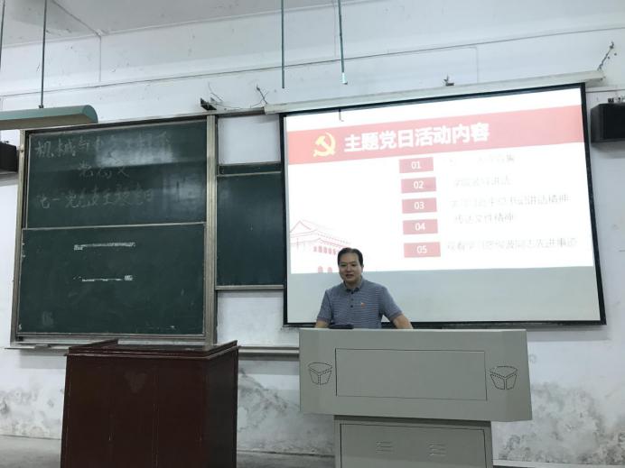 为纪念中国共产党建党96周年,迎接党的十九大胜利召开,推进“两学一做”学习教育常态化制度化,根据湖北省委“两学一做”学习教育协调小组《关于纪念中国共产党建党96周年有关安排的通知》要求及校组织人事部的安排,落实公司《关于组织开展“七一”党支部主题党日活动的通知》,2017年6月30日,机械与电气工程系党总支于1102教室组织系部全体党员开展“七一”主题党日活动,304am永利集团党委副书记陈俊同志、机械与电气工程系党总支书记赵振华同志共计40余名党员参加本次活动,李承亮同志为本次主题党日活动的主持人。