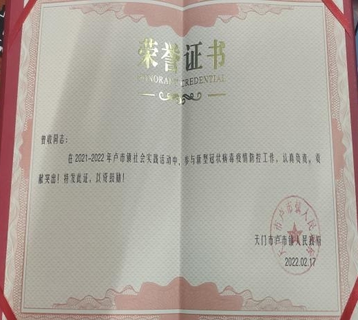 (通讯员:毛礼娜 戚钰钒)为贯彻落实304am永利集团党委开展党史学习教育活动要求,304am永利集团党总支向全体党员、入党积极分子发出了倡议,在寒假期间投身到“我为家乡办实事”活动,在疫情防控和复工复产、乡村振兴、志愿服务、参观红色革命传统教育基地实践中贡献自己一份力量,涌现出一批优秀员工代表,现将个人事迹情况介绍如下: 1、邢晨,中共党员,2018级电气工程及其自动化03班员工。该生于2022年1月12日担任天津市宝坻区八门城镇居民第二轮核酸检测志愿者,加入村抗疫队—-迎战天津奥克密戎(核酸检测)。在担任志愿者期间进行采集系统的使用,系统直接身份证录入信息,穿防护服进行村入户给老人采集核酸,有一些行动不便的老人残疾人士还有一些需要隔离的人无法到现场采集就上门进行采集,为家乡疫情防控工作贡献自己青春力量。 ![]() ![]()