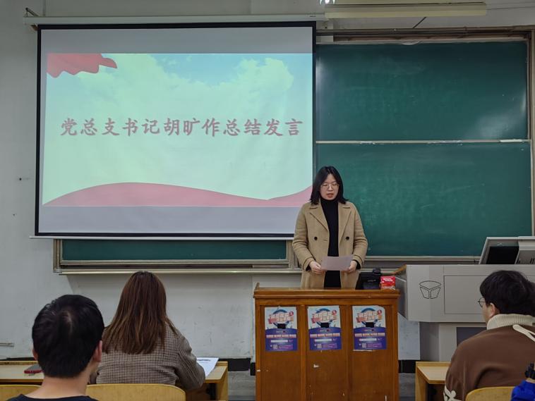 胡旷书记作总结讲话。她介绍了本次活动的跟踪监督机制、检验表彰机制、宣传报道机制。她希望全体党员、积极分子认真落实此项工作,充分发挥模范带头作用,不断强化团结协作意识,形成强大工作合力,以实际行动贯彻落实党的二十大精神,为推动学院高质量发展作贡献。