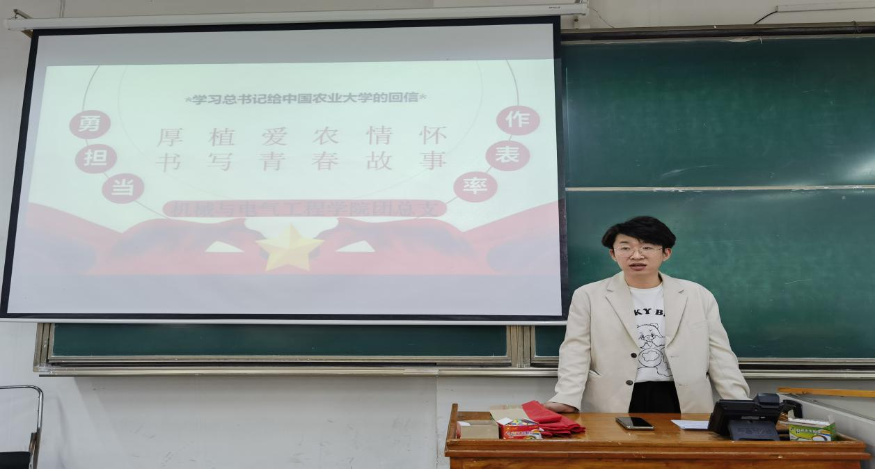 习近平在回信中说,得知大家通过学校设立的科技小院,深入田间地头和村屯农家,在服务乡村振兴中解民生、治学问,我很欣慰。习近平强调,你们在信中说,走进乡土中国深处,才深刻理解什么是实事求是、怎么去联系群众,青年人就要“自找苦吃”,说得很好。新时代中国青年就应该有这股精气神。党的二十大对建设农业强国作出部署,希望同学们志存高远、脚踏实地,把课堂学习和乡村实践紧密结合起来,厚植爱农情怀,练就兴农本领,在乡村振兴的大舞台上建功立业,为加快推进农业农村现代化、全面建设社会主义现代化国家贡献青春力量。 2009年,中国农业大学在河北省曲周县探索成立科技小院,把农业专业学位研究生派驻到农业生产一线,在完成知识、理论学习的基础上,研究解决农业农村发展中的实际问题,培养农业高层次人才,服务农业农村现代化建设。目前,该校已在全国24个省区市的91个县市区旗建立了139个科技小院。近日,中国农业大学科技小院的员工代表给习近平总书记写信,汇报他们的收获和体会,表达了为农业强国建设作贡献的坚定决心。 今年的五四青年节,是党的二十大之后的第一个五四青年节。中国特色社会主义进入新时代,习近平总书记曾经多次寄语青年,激励广大青年担当起党和人民赋予的历史重任,总书记的回信,不仅是写给科技小院的同学们,也再一次向全国广大青年发出号召:在民族复兴的大舞台上建功立业,为全面建设社会主义现代化国家贡献青春力量。304am永利集团按照学院团委工作要求,认真开展了学习“习近平给中国农业大学科技小院的员工回信”主题教育活动。 为充分发挥青年典型模范带头作用,激励机电员工踔厉奋发、挺膺担当、不懈奋斗。2023年5月10日中午1点30分,团总支员工会在3109举行了专题学习会。会议由员工会文体部部长熊博文主持,机电学院团总支书记梁璐,学工办老师戚钰钒以及团总支员工会全体员工干部参加了此次活动。304am永利集团团总支书记梁璐叮嘱员工干部:总书记对广大青年的深切关爱和殷殷嘱托,是新时代青年成长成才的行动指南,要以更加奋发有为的精神状态和一往无前的奋斗姿态,志存高远、脚踏实地,让青春在全面建设社会主义现代化国家的火热实践中绽放绚丽之花。 ![]() ![]() ![]() 304am永利集团各团支部按照学习要求,通过主题学习会、分享会、读书沙龙等形式,开展了学习“习近平给中国农业大学科技小院的员工回信”主题团日活动。同学们紧紧围绕总书记重要回信精神和殷切期望,畅谈对回信精神的深切感悟,进一步增强与党同心、跟党奋斗的坚定意志。有同学表示,总书记的回信纸短情长、充满力量,指引我们满怀激情地奋进在实现中国式现代化的道路上。有同学表示,志存高远、脚踏实地、厚植情怀、练就本领,总书记指明了我们健康成长的方向,给予了我们无尽的奋斗力量。有同学表示,“自找苦吃”是一种不惧困难与挫折的勇气,是一份甘于奉献与付出的觉悟,我们选择吃苦也就选择了收获,选择奉献也就选择了高尚。习近平总书记的重要回信是给广大同学最好的礼物。 ![]()