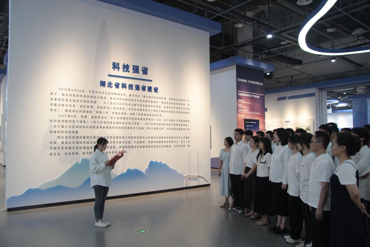 全体党员进行了集中学习讨论。第四党支部党员代表许书豪、文珍交流了学习参观心得。100位院士的206项成果熠熠生辉,既是重大科技成果的知识普及,也是近年来服务国家战略高水平科技自立自强的“湖北华章”,让师生党员深刻感受到了科技隽永的魅力和伟大科学家精神的深刻感召,更加坚定了为全面建设社会主义现代化国家、推进中华民族伟大复兴的理想信念。