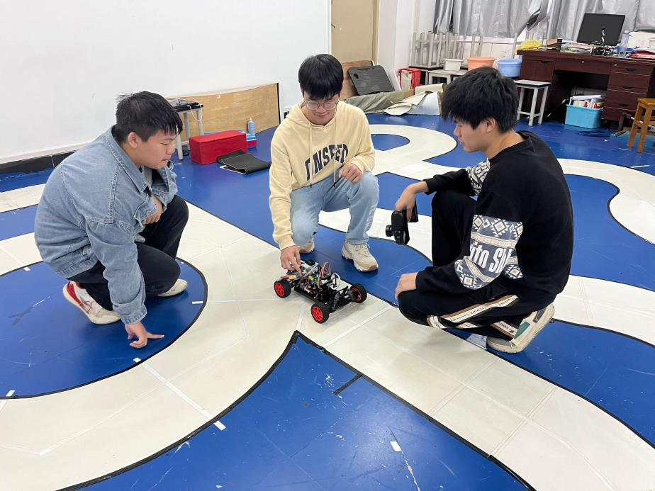 机电学院无人系统科创团队是由以优秀老师为指导,党员和入党积极分子为主力,专业过硬的技术能手为支撑而组成的团队,让党旗高高飘扬在科技创新主战场。团队共培育了6个备赛组,分别是:电磁组、镜头组(英飞凌)、独轮越野组、气垫船、镜头组(stc)、越野信标组。6组智能车基本完成了车模硬件搭建、软件编写,实现了赛道的基本元素的识别及循迹。现场6组智能车队分别在PVC赛道进行了路径识别和运行展示,交流探讨了他们目前遇到的问题和困难。