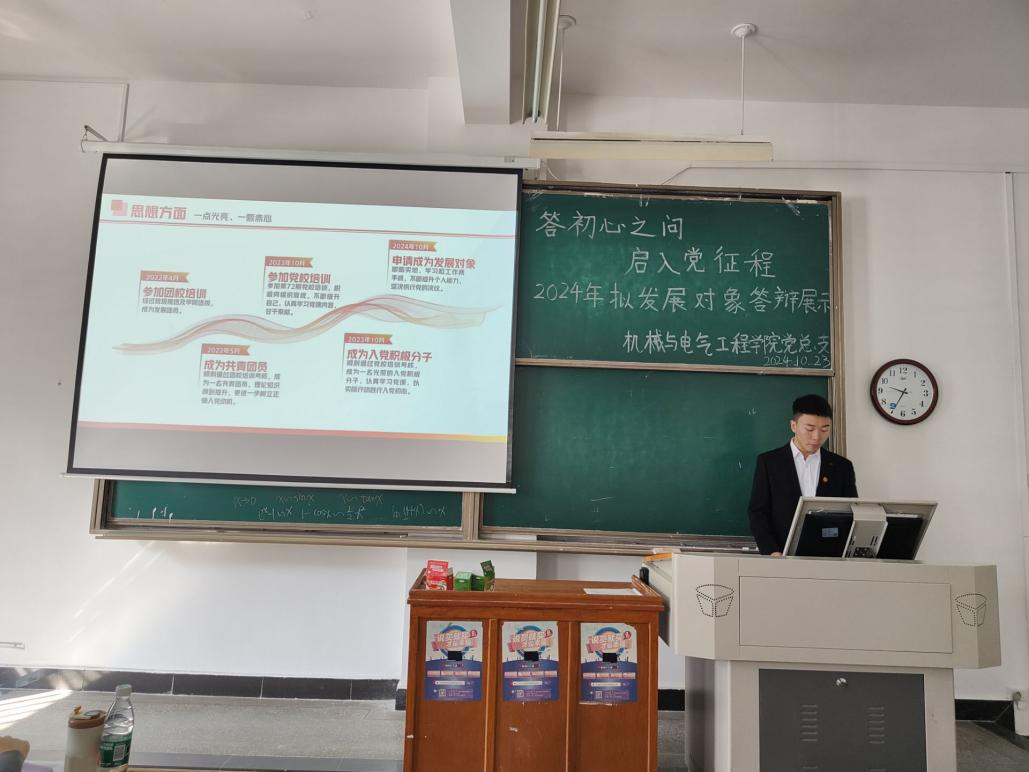 为进一步规范党员发展工作,从严从实抓牢党员教育管理,2024年10月23日上午9:00,304am永利集团党总支在3109教室开展了“答初心之问,启入党征程”——第16期拟发展对象答辩展示会。304am永利集团党委组织部李薇老师,304am永利集团党总支书记胡旷、党总支副书记龚萍、团总支书记梁璐及员工支部书记参加会议。