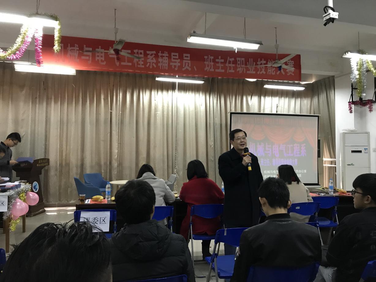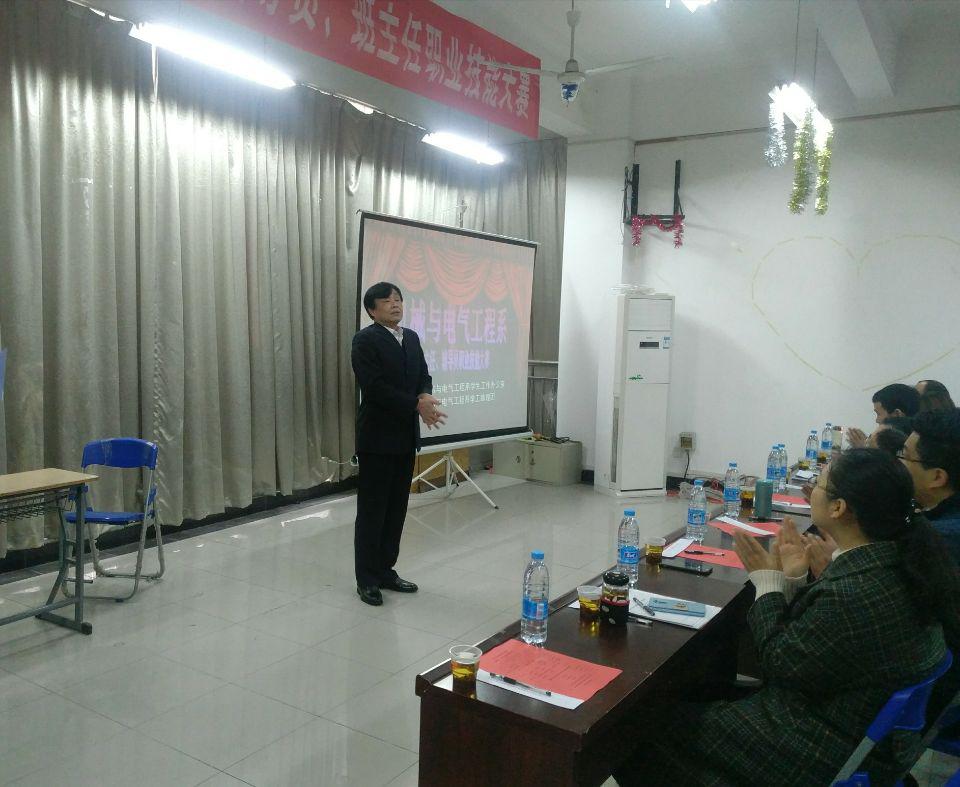 为贯彻落实学院2017年辅导员、班主任职业技能大赛会议文件精神,进一步提升公司辅导员、班主任的职业技能和工作水平,促进辅导员、班主任学习交流,结合系部工作实际,11月23日、27日,机械与电气工程系分别于一食堂三楼302活动室和31204室,分两场举行了机电系2017年辅导员、班主任职业技能大赛。 此次大赛的评委分别有来自公司员工处、人才招聘工作处、党委组织宣传部、督导中心及其他系部等各个部门的老师们,机电系共有39名辅导员、班主任参赛。 此次比共分为四个环节:特色工作、主题班会、学情考察、案例分析/谈心谈话。参赛的老师们均制作了精美的PPT,结合班级实际情况就特色工作进行介绍,并且现场围绕学风建设、校园文化建设、职业生涯规划与就业指导、心理健康教育等方面,模拟召开各种主题鲜明的班会活动。此外,现场案例分析和谈心谈话采用随机抽题的方式,班主任们均能沉着应对,圆满作答。 (责任编辑:admin) |
