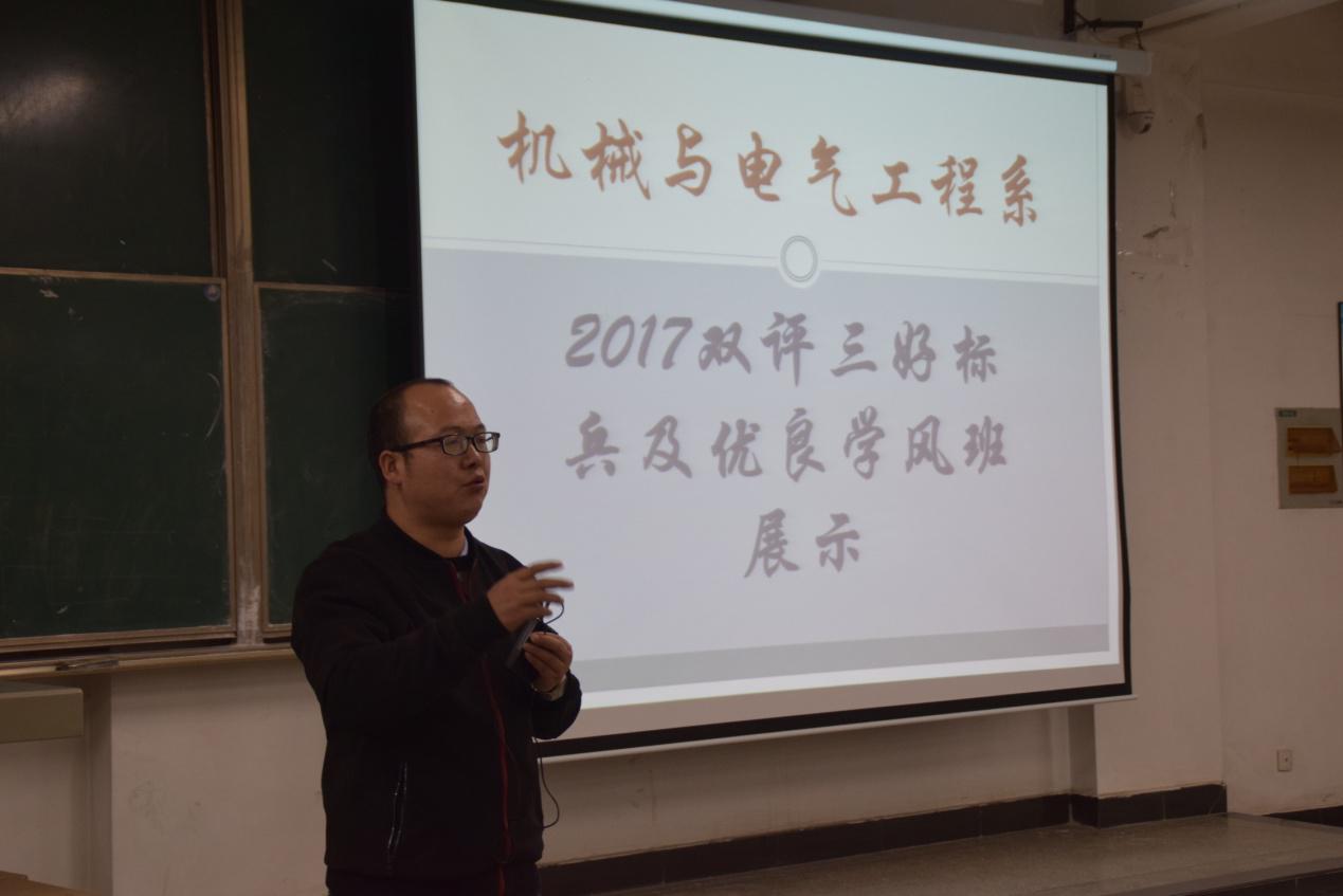 为树立先进典型,建设良好学风,结合2016-2017“双评”工作,10月30日晚,机械与电气工程系于3501教室举行2016-2017学年三好员工标兵与优良学风班展示活动。机械与电气工程系副书记李承亮老师、机电系14级年级组长齐君老师、16级年级组长邹宏萍老师、及机电系团总支书记崔玲君老师出席本次活动,来自14、15、16级20名三好员工标兵候选人和5个优良学风班候选班作为此次活动的展示对象。