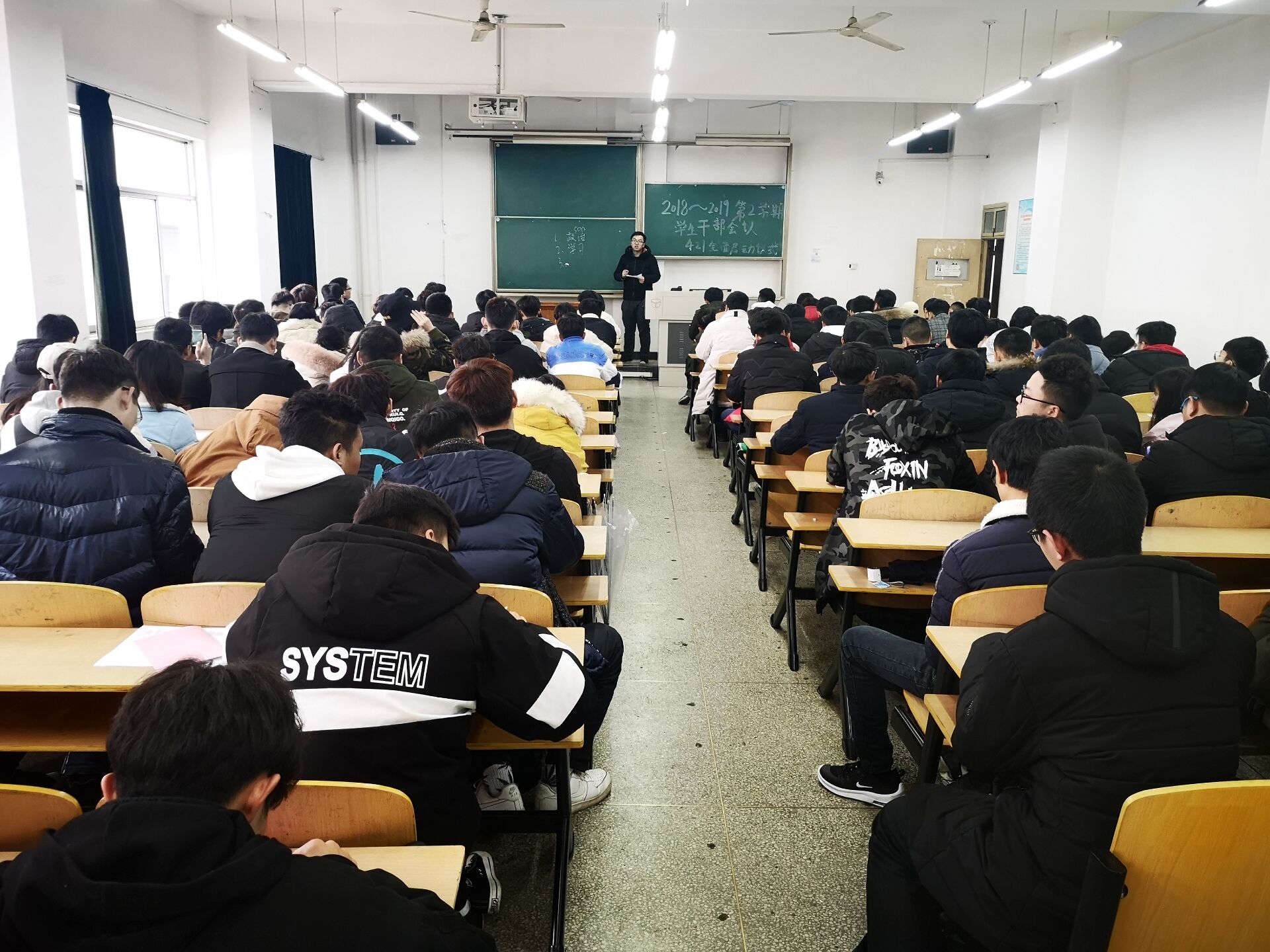 (通讯员:王斌 摄影:王严学)2019年3月5日12:30,机械与电气工程系在3211教室召开了2018~2019第二学期干部会议,本次会议由团总支书记陈旭老师,18级年级组长方科老师主持。16级、17级、18级的全体班长和团支书参加此次会议。会议伊始陈旭老师言简意赅地向大家介绍了此次会议的主要目的,之后分四点详细向大家讲述本次会议的核心。第一点,即日起机电系将全面启动421活动,推进421活动的开展,使421这个活动更好更有效的进行。本次活动将主要针对17级和18级员工,具体要求为17级各班每周至少上两次晚自习,18级各班每周上三次早自习和三次晚自习,每天由班长拍照片发给班导进行打卡。