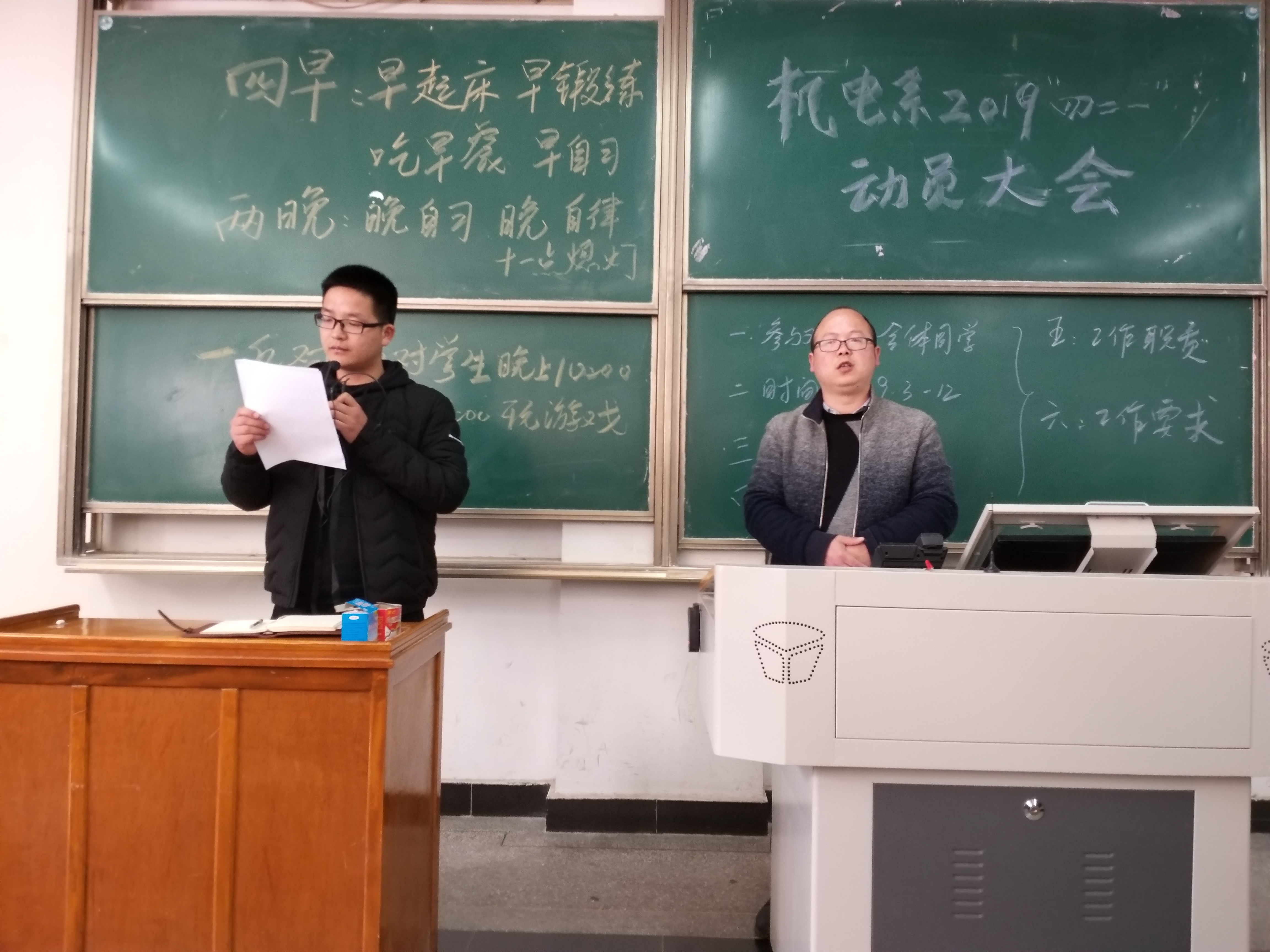 (通讯员:袁美晨)2019年3月11日中午12:10机械与电气工程系在三教3211举行了“四早两晚一反对”活动动员大会。出席本次会议的有机电系副主任李承亮老师,机电系全体辅导员老师,同时参会的还有机电系全体党员、入党积极分子、机电系团总支员工会主要干部、机电系勤工助理团全体成员。