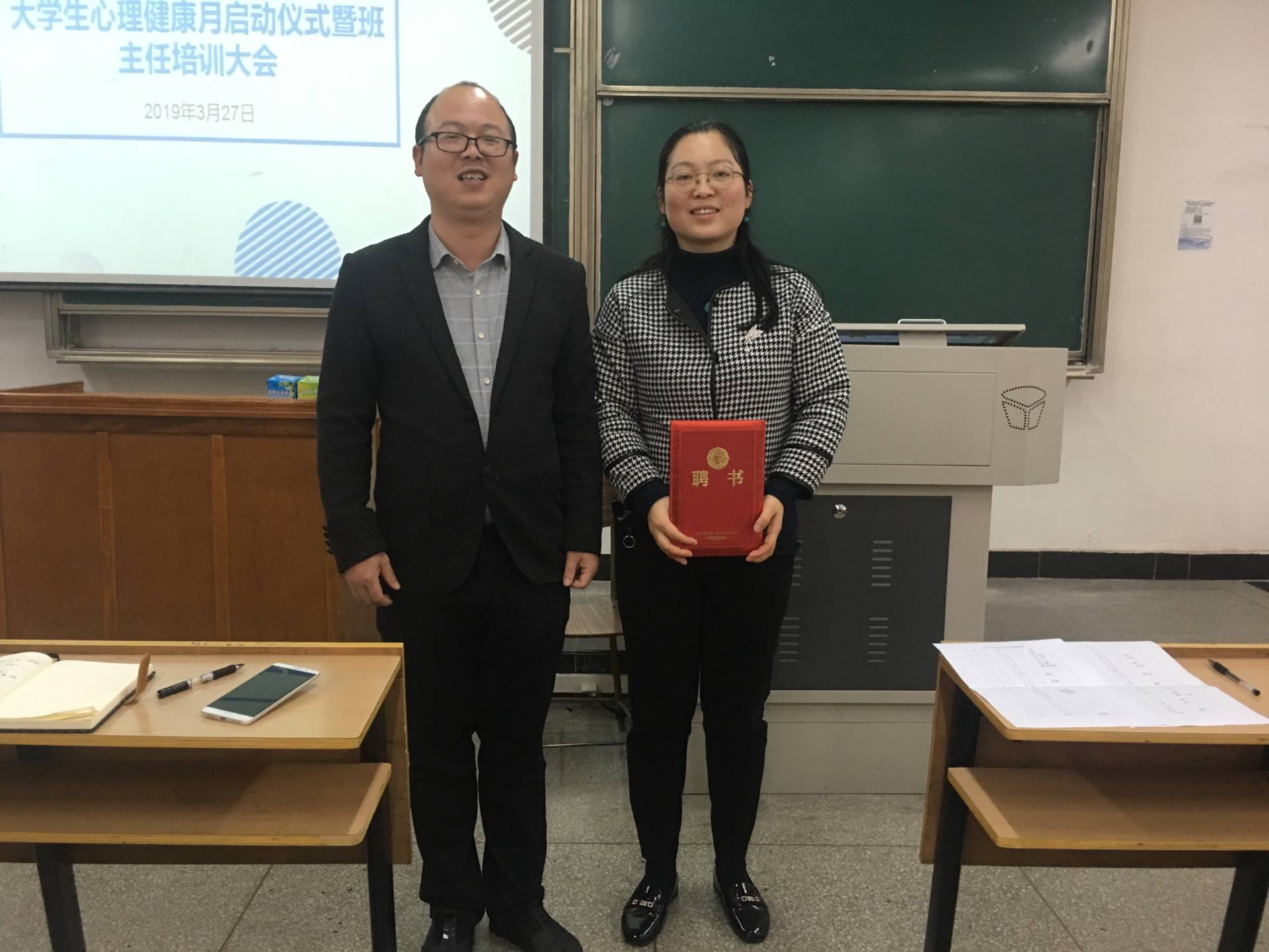 首先李承亮主任为严玲教授颁发了聘书,聘请严教授为机械与电气工程系培训导师。接着李主任指出:心理教育工作在班主任工作中的重要性,并希望班主任能够认真学习消化,并学以致用。 随后严玲教授围绕“老员工心理常见问题及处置”的主题,从心理学的专业角度,结合真实的案例剖析了当代老员工容易出现的心理问题,帮助大家寻求解决问题的办法。严教授讲解过程深入浅出,贴近实际,走进了大家的心里。辅导员、班主任老师虚心听讲,认真笔记,获益匪浅。