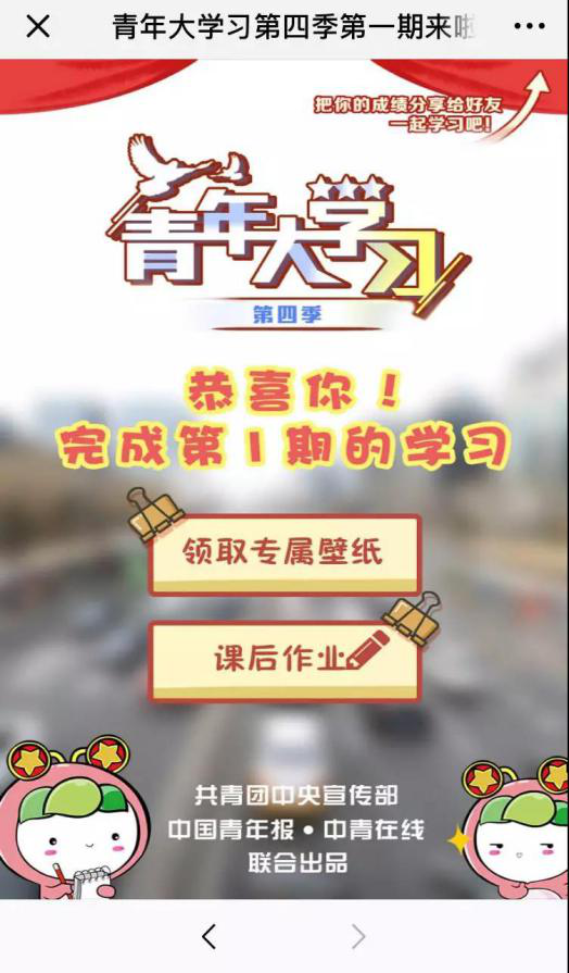 6、答题完成后会出现恭喜你!完成学习啦!还可以,领取你的壁纸哦!