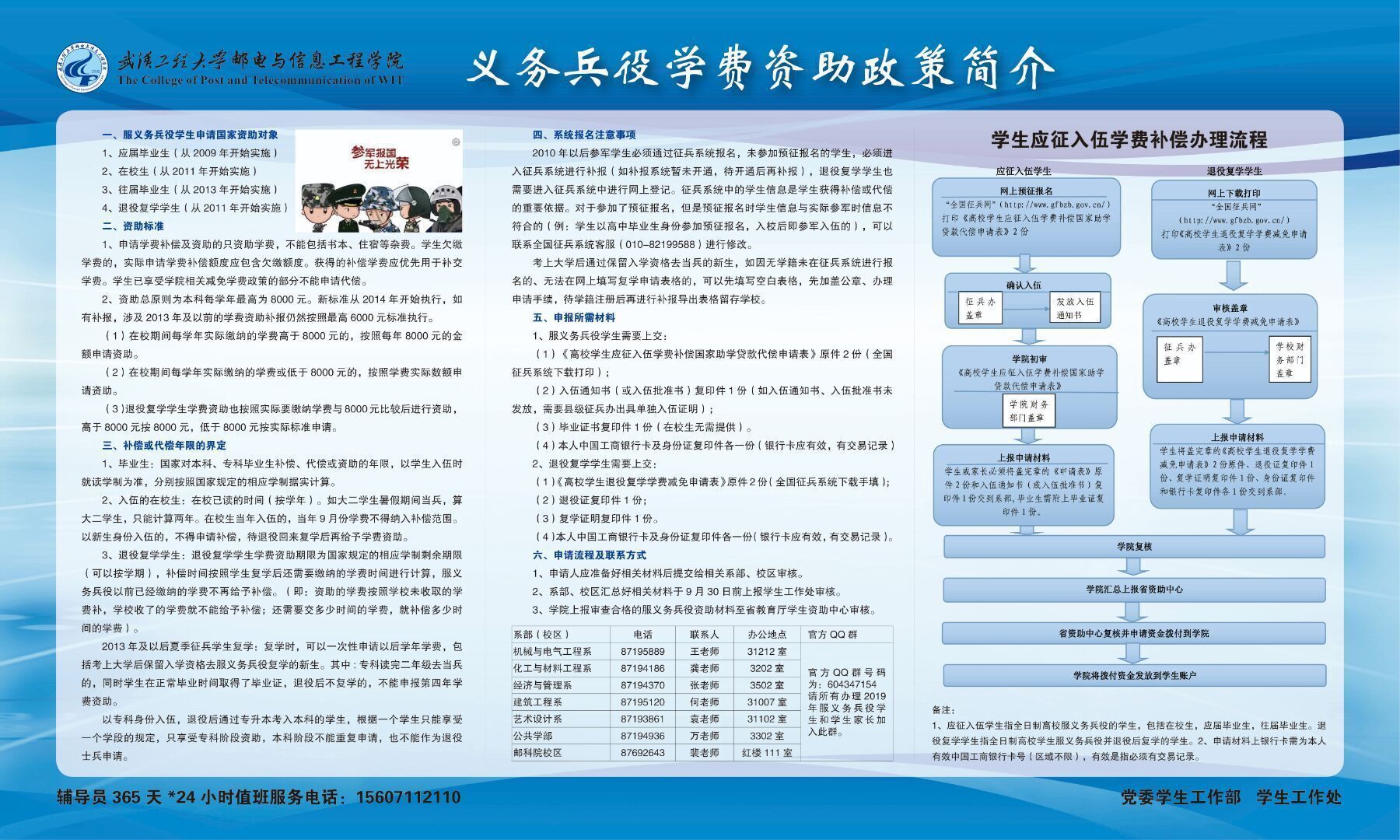 4、服义务兵役资助每年办理一次,请申请人和各系部、校区合理安排材料提交时间,以免材料审核不通过而错过今年上报机会。