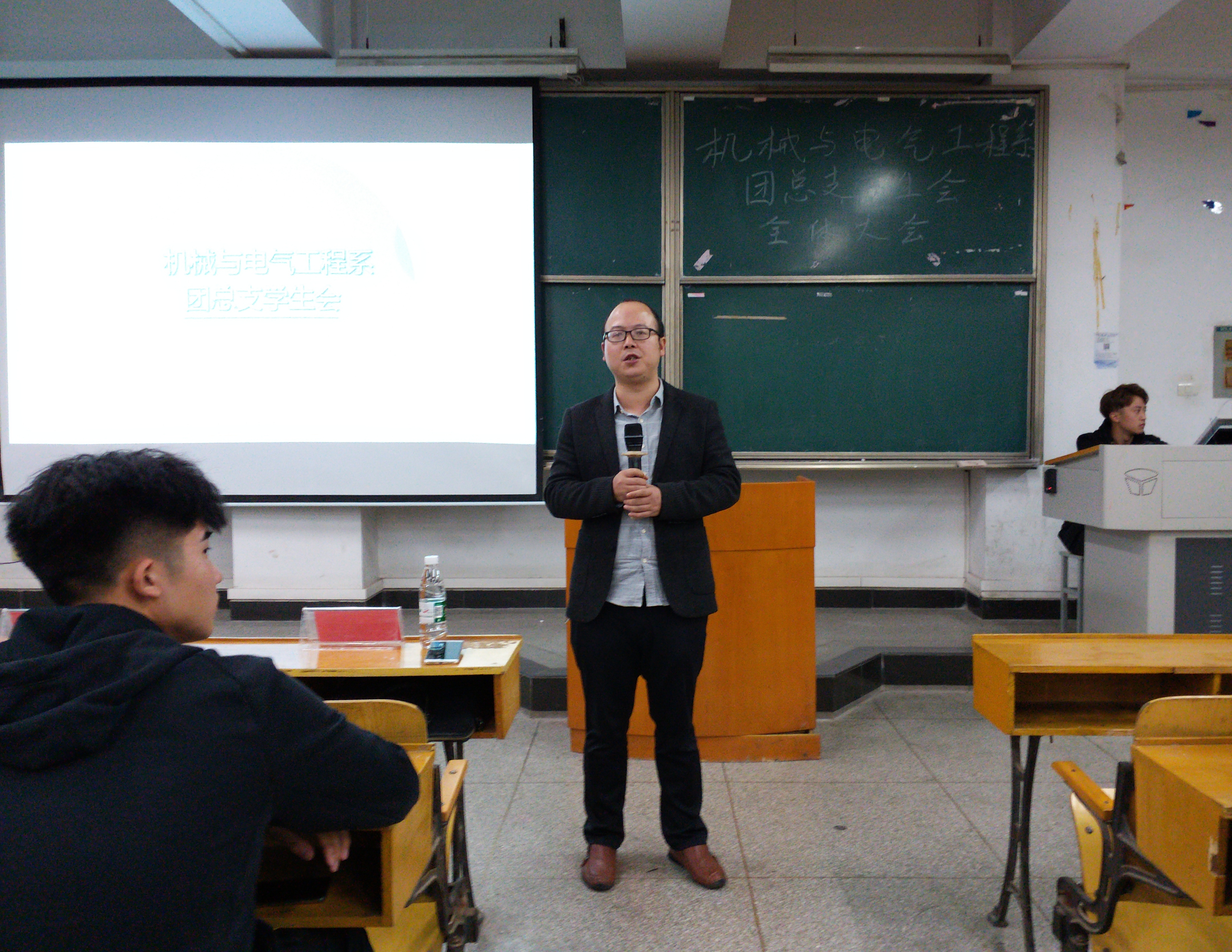 会议之初由机械与电气工程系党总支副书记李承亮致辞:他首先提到了即将到来的运动会,员工会是为同学们服务的组织,运动会期间更是要做好后勤工作。还举例了一位曾任职于员工会主席的优秀学长,已经连续两年获得国家奖学金,希望同学们能够向他学习,平衡好时间,工作与学习两不耽误。随后由机械与电气工程系团总支副书记朱灿发言:他先对新加入员工会的新生干事们表示欢迎,希望大家都能找准自己在员工会里的定位,其位,谋其职,共同建设好这一个大家庭。