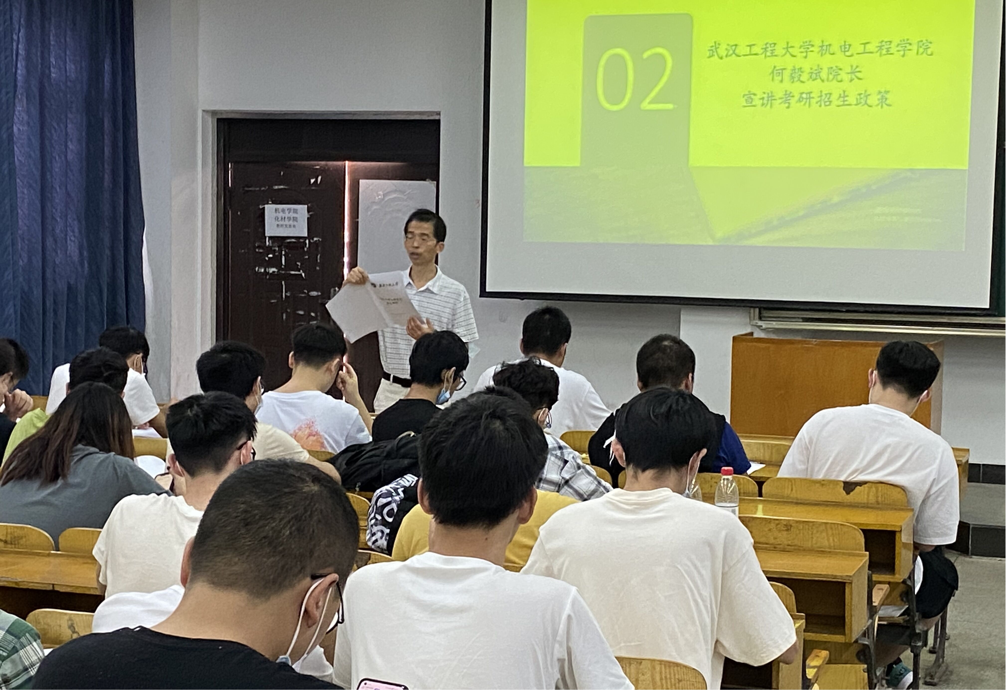 为更好地调动公司员工考研积极性、增强员工考研信心、坚定员工考研决心,2021年9月23日下午16点,在3001教室举行了“毕业生考研动员大会”。会上特别邀请了武汉工程大学机电工程学院经理何毅斌教授、电气信息学院熊俊俏教授给同学们进行了考研动员和报考政策指导。 首先,何家胜经理做出讲话,希望毕业生积极踊跃报考武汉工程大学,抓住考研机遇,积极备考。 ![]()