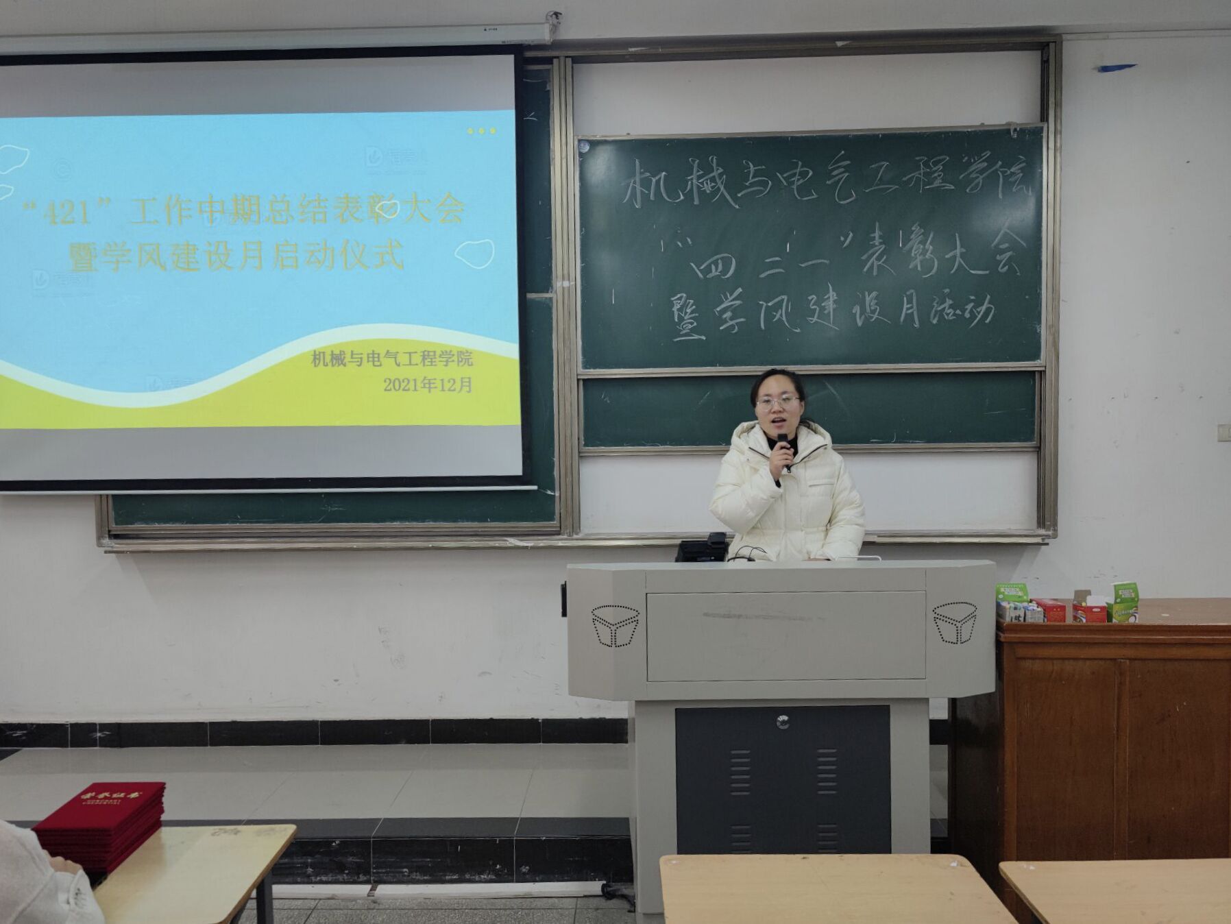 (通讯员:戚钰钒)2021年12月9日上午11点40分,304am永利集团在3教3403教室举办了举行“421”工作中期总结表彰大会暨学风建设月启动仪式。304am永利集团党总支副书记龚萍书记、辅导员古玲霞老师、何适老师出席了本次活动,本次活动由2021级年级组长戚钰钒老师主持。