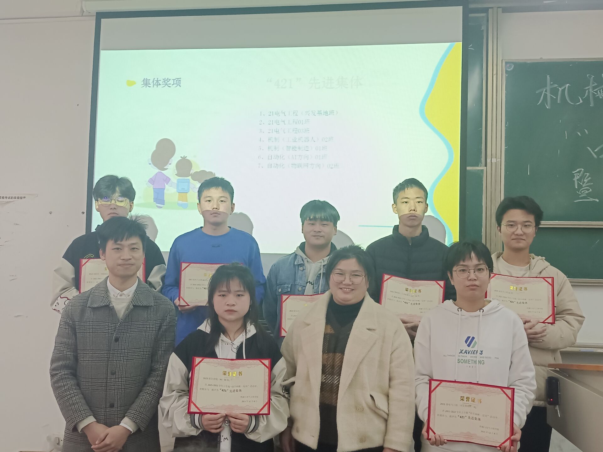 首先,由本学期“421”活动中表现较好的先进班级代表介绍了本班贯彻落实早晚自习的情况和晚上自主熄灯的经验。2021级电气工程及其自动化03班班长刘泽全介绍了班级同学通过早自习学习英语,晚自习共同学习员工手册的情况。2021级自动化(AI方向)01班的龚唐平提到了班委对本班421工作的规划。