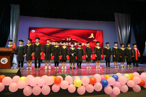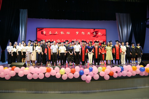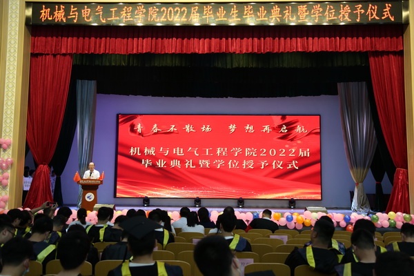 毕业典礼开始前,在校生和毕业生代表带来了欢快的舞蹈表演,并深情合唱歌曲《那些年》,共同回忆了机电学子的青春岁月,传递了对毕业生深深的祝福,启迪大家在最美好的年华追逐梦想。