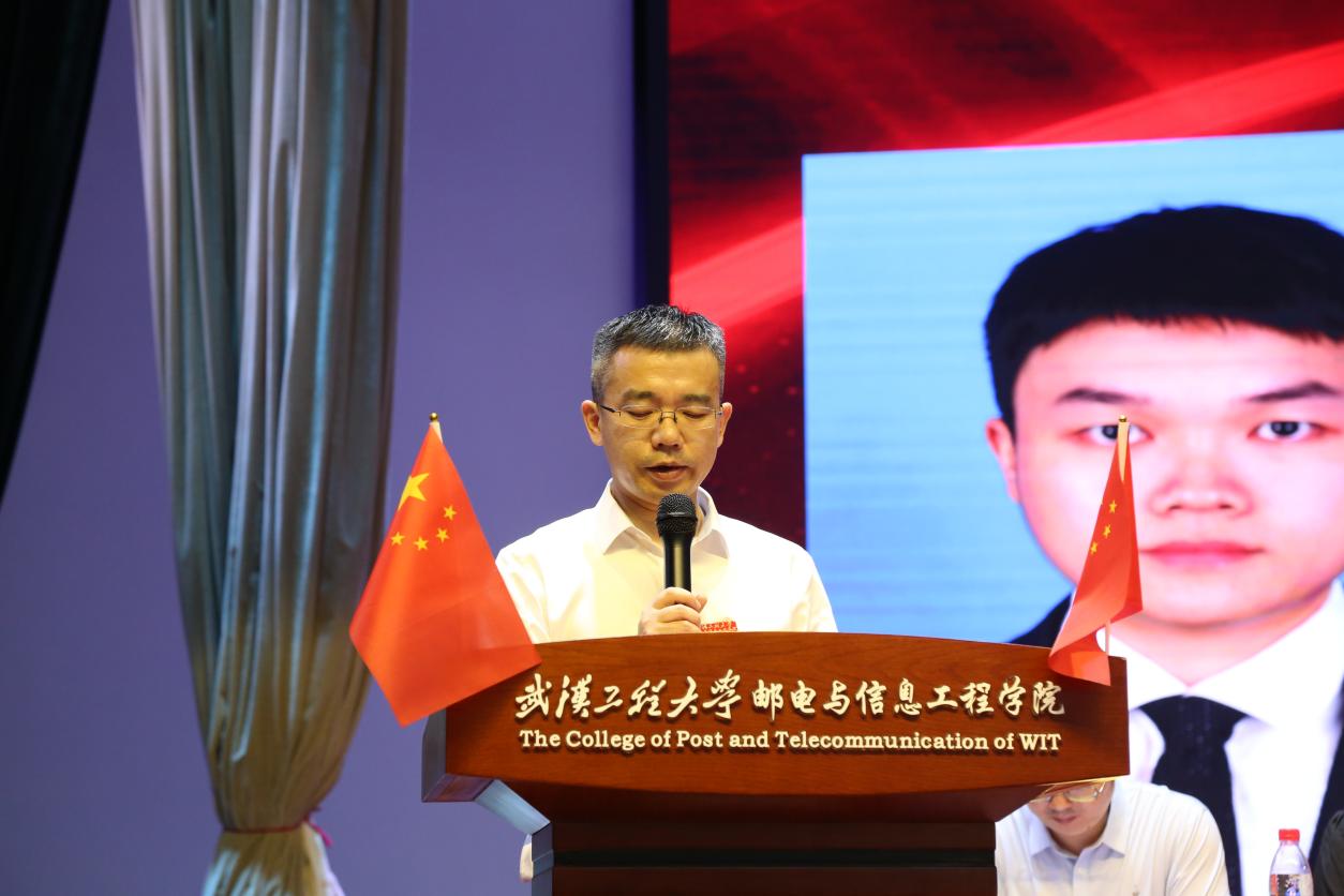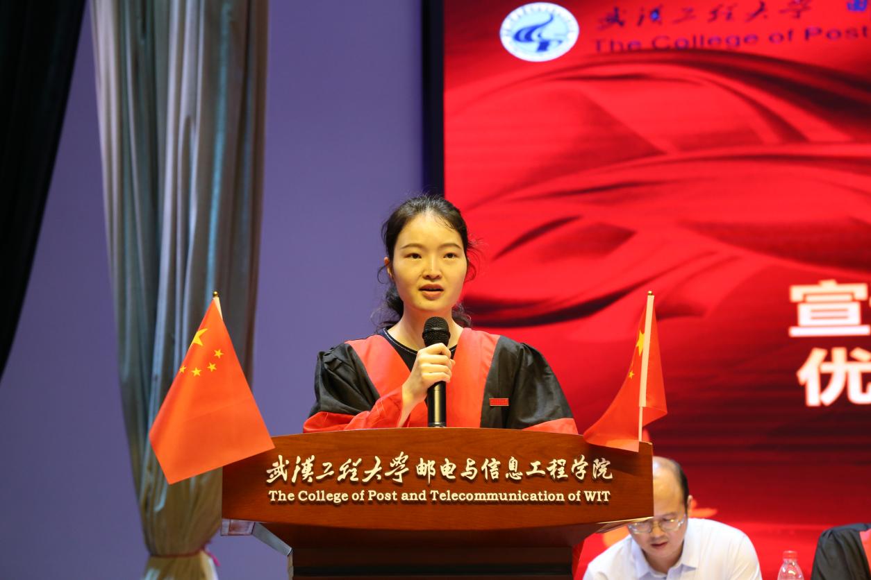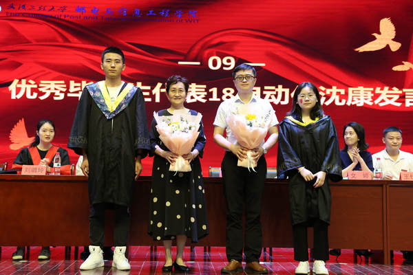 优秀毕业生代表2018级自动化01班沈康同学发言。他代表全体毕业生向学院、师长和亲友表达衷心的感谢和美好的祝愿,表示不论走到哪里,都会时刻谨记老师们的教诲,牢记身上有机电学院光辉的烙印,在接下来的生活中,将带着母校给予的温暖和力量,坚守初心,坚定信念,以奋斗者的姿态勇攀高峰。