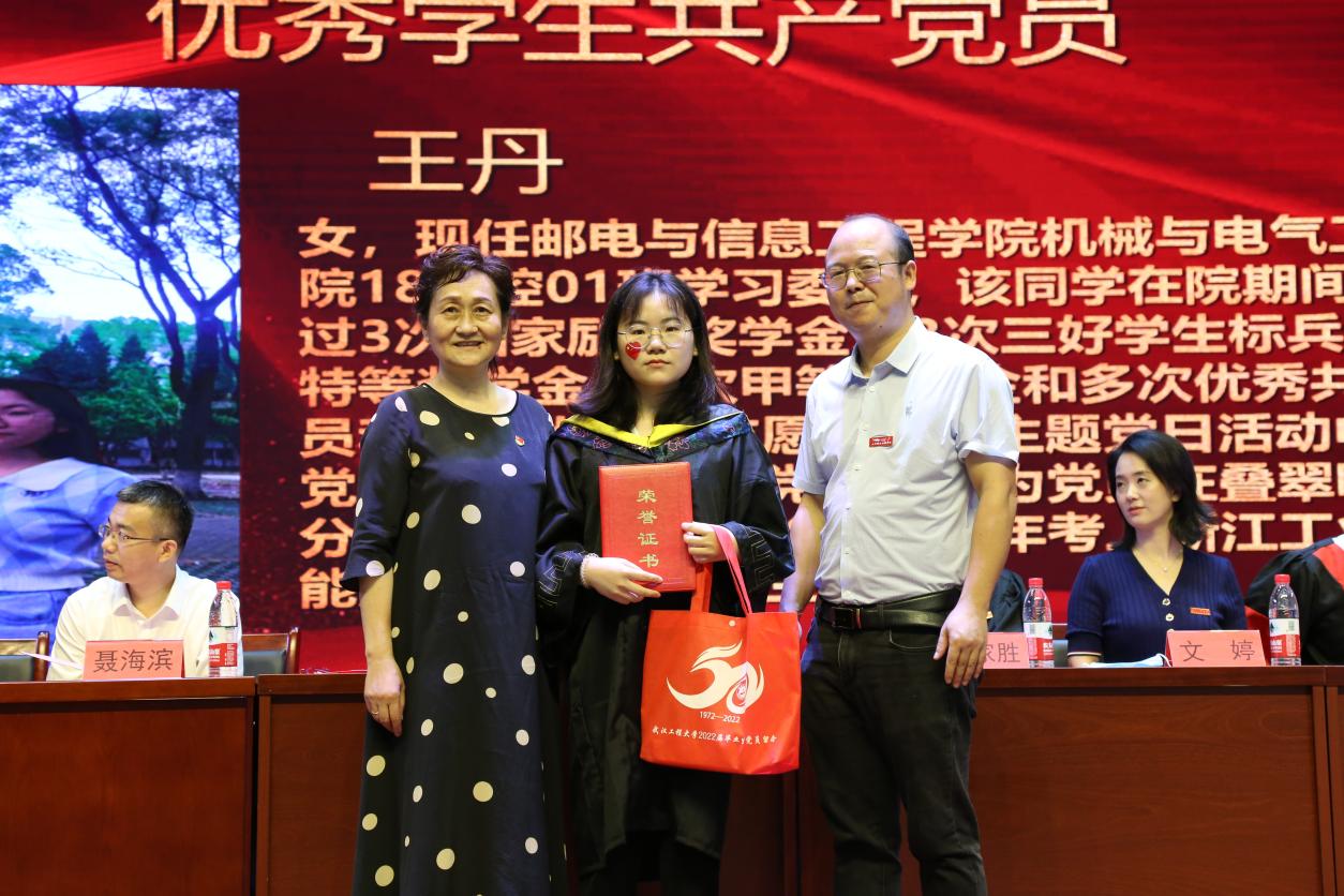 党委组织部部长李佩君和304am永利集团党总支书记李承亮向优秀员工共产党员获得者颁发荣誉证书