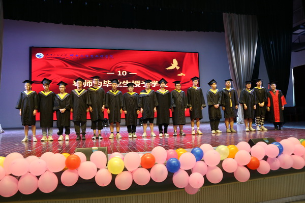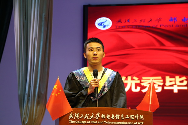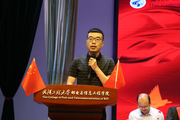 机械教研室李清博老师作为教师代表发言,他希望全体毕业生有“为学心难满”的追求,以全新的姿态主动适应变化发展的社会,学习新知识、新技术、新方法;以“强学而力行”的坚持,学以致用,在实践中发现新知、运用真知、增长才干,在社会主义现代化建设中建功立业。
