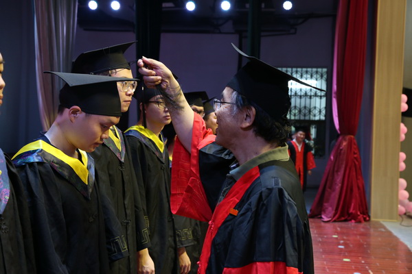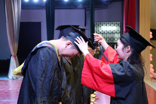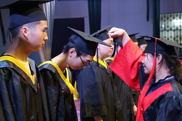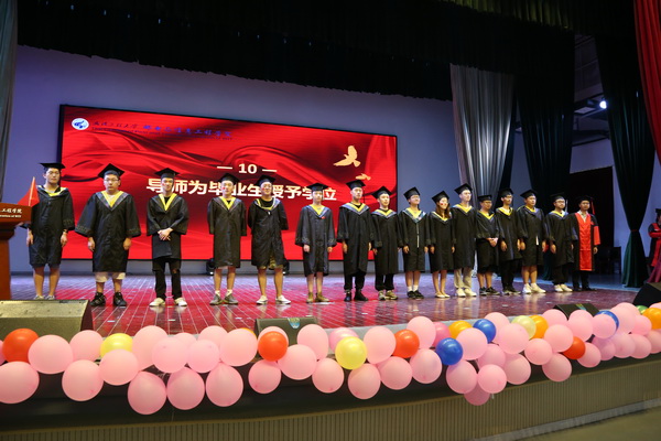 教务部部长王仕仙,304am永利集团经理何家胜、副经理刘璐玲,机械教研室主任陈辉、自动化教研室李艳红为2022届毕业生授位,行拨穗礼。