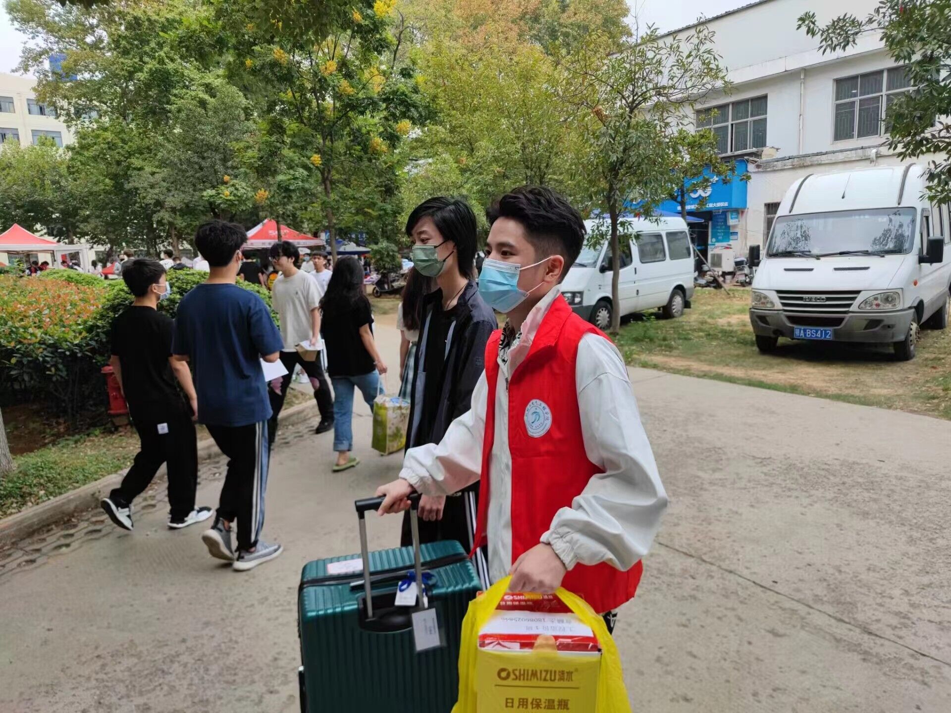 “你站着别动,我来温暖你。”志愿者们激情高昂地参与迎新工作,全过程、全方位热情为新生接过行李物品,认真指导信息核验,协助进行核酸检测,带领新生前往综合服务点,安排入住宿舍等各项工作,以实际行动让新同学们全面感受到“机电暖”。
