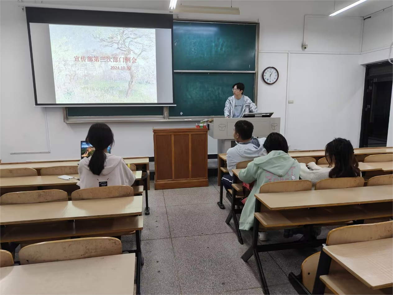 4. 2024年10月28日12:30社会实践部部长徐秋阳主讲的 “社会实践展示及工作能力提升” 培训,通过分享优秀的社会实践案例,引导干部们积极参与社会实践,提升自身的实践能力和综合素质,同时也为工作中的问题解决提供了新的思路和方法。