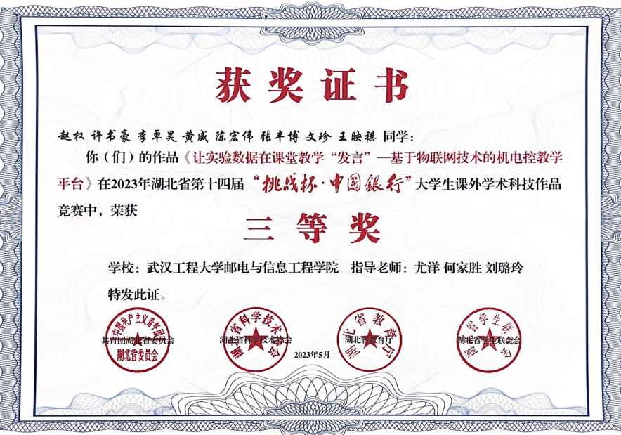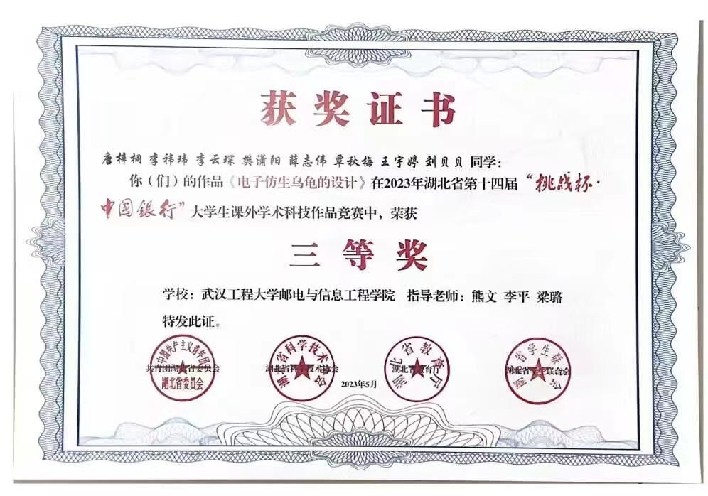 指导老员工创新创业项目《智能水杯的制作》;指导老员工创新创业项目《智能办公小助手》。2018年指导全国老员工智能互联创新大赛,获得湖北省三等奖;2019指导全国老员工智能互联创新大赛,获得湖北省二等奖;2020年指导全国老员工飞思卡尔智能车大赛,获得西南赛区三等奖;2022年指导第五届全国老员工嵌入式芯片与系统设计竞赛,获得湖北省三等奖;2022年指导第十七届全国老员工智能汽车竞赛,获得华南赛区三等奖。2019-2021年连续三年指导员工获得院级优秀学士学位论文. ![]()